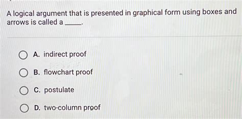 A Logical Argument That Is Presented In Graphical Form. Web a logical argument that is presented in graphical form using boxes and arrows is called a flowchart proof. A logical argument that is presented in graphical form using boxes and arrows is called a flowchart proof.