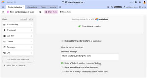I think in order to do this you would need an. Here are the basic steps to set this up. Airtable forms are included with airtable’s free plan, pro plan for additional features starts at $20/mo best for: Kudos to ben green for. Web image and document submission inside the form; In this article, we'll use this event planning. Web the other form is for program managers to make changes to records in that same main table. The button will open a form that will have all fields. When they submit the form, it. Web you can use the airtable automations feature to create your own, customized form submission.